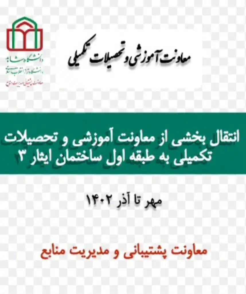 انتقال بخشی از معاونت آموزشی و تحصیلات تکمیلی به طبقه اول ساختمان ایثار 3